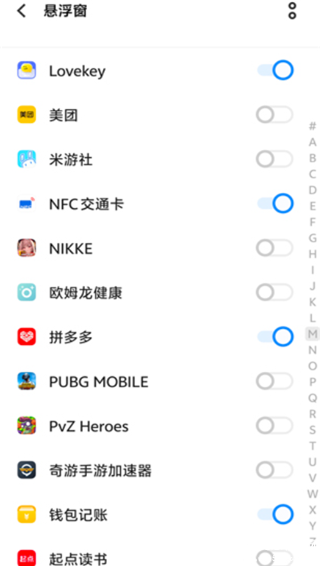 3、第二部开启悬浮球,开启允许显示在其他应用的上层。