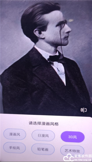 3、选择你需要打造的照片,然后选择漫画风格,比如日漫风、3D风、手绘风等,然后就会达到你想要的效果,点击保存。
