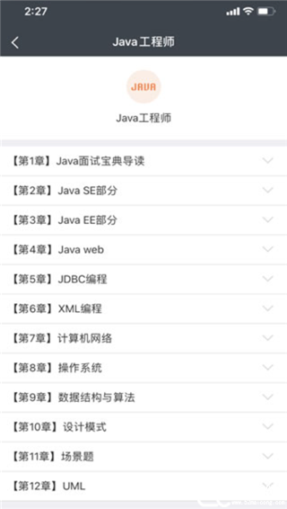 3、比如我选择的是Java工程师,这里有相关题目章节任你选择,开始你的练习吧。