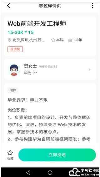 3、上传完成后,寻找合适自己的岗位,然后觉得不错的职业可以【立即投递】,多投几家也没有关系。