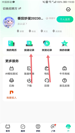 4、投递完成后,进入个人界面,可以随时查看【投递记录】,【浏览记录】可以查看到你看了哪些公司和职位。