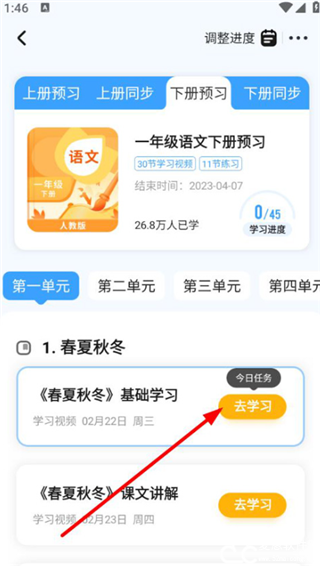 3、每天开始学习前,我们打开当月的学习计划,然后选择今天的学习计划,开始我们的课程。