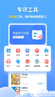 1、进入首页后,我们可以看到多个学习板块,包括识字、听力、口语、口算等,现在让我们开始创建学习计划,来完成高校学习。
