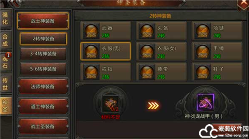 同样的2个神装备可兑换1件圣品质装备,装备品质越高,附加的属性越多。