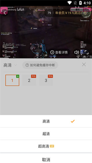 3、选择需要缓存的视频清晰度,高清、超清以及超高清。