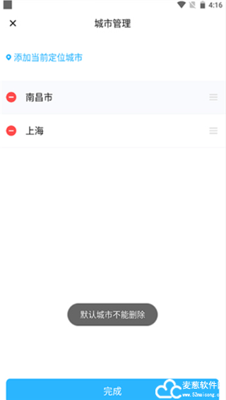 默认城市当下是无法进行删除的,大家只能将添加的备用城市进行删除