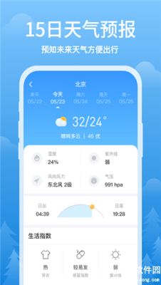 3、结合手机gps功能,能够精准定位用户所在位置,并提供当地的天气预报,即使您身处异地,也能轻松了解家乡的天气状况。