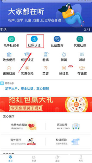 2、进入首页后会有很多的功能板块提供选择,点击【社保认证】