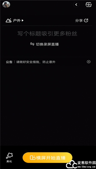 3、如果我选择户外的话,需要写个标题吸引更多粉丝,编辑好内容后简单介绍一下,所有完成以后开启直播。