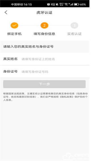 6、最后一步完成实名认证,填写你的真实姓名与身份证号即可开启直播生涯。