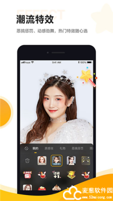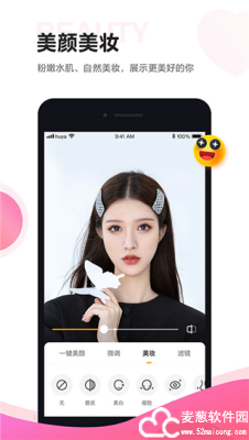2、实时直播也能拥有粉嫩水肌,智能美颜系统让素颜的你也能美出天际,一键上妆、炫酷效果,时刻展示棒棒的你!