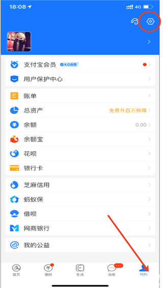 1、首先需要打开手机支付宝,进入我的页面后点击上方的【设置】