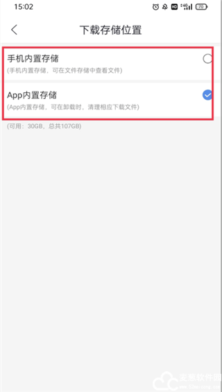 3、一般默认的都是【App内置存储空间】,如果需要更改的话,可以选择【手机内置存储】,可在文件存储中查看文件。