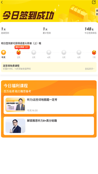 2、进入签到页面后,提醒你今日签到成功,说明已经完成打卡了。