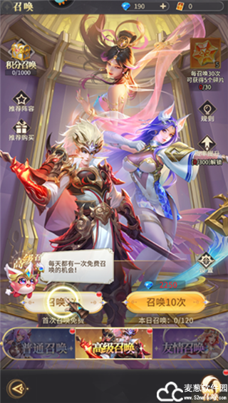 5、每天都有一次免费召唤的机会,如果想要召唤10次就要花费一定的钻石。