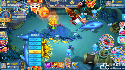 4、如果前方有大鱼出没,我们可以提升炮塔的倍数,获得更大的威力。