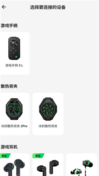 2、选择要连接的设备,是游戏手柄、散热背夹还是游戏耳机。