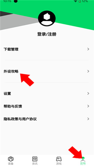 5、如果新用户有哪里不清楚的话,可以点击【我的】进入个人界面后查看外设攻略,很多教程可以帮助大家。