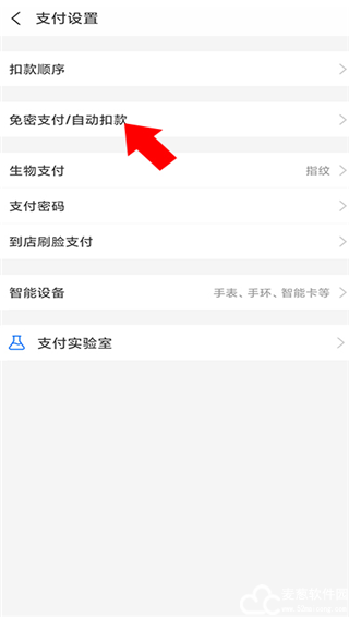 2、在支付设置页面,点击【免密支付/自动扣款】