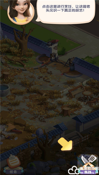 1、进入游戏后我们将了解一段故事,就可以开始我们的经营之旅了,为了夺回自己的饭店,你需要和严师傅开始一场较量。