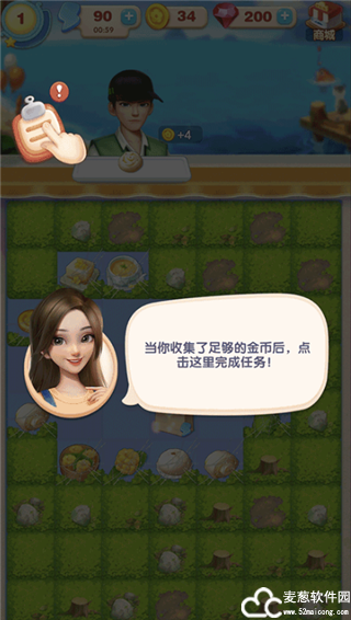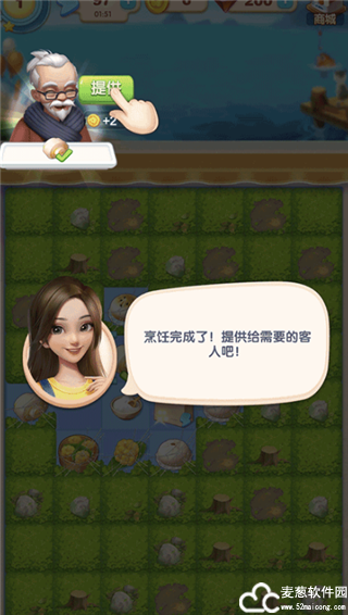 3、消消乐模式,将两个相同的棋子进行合成,打造一个更高等级的食材。
