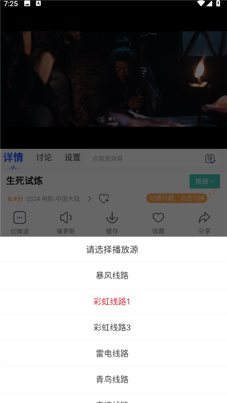2、如果播放过程中出现404或者卡顿的话,直接切换播放源即可。