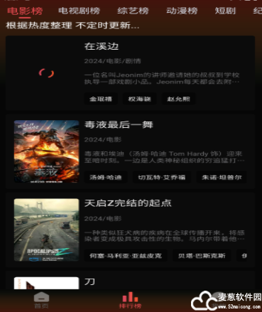 2、在排行榜里,大家可以轻松查找最近热度超高的电影、电视剧、综艺等资源。