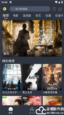 1、在麦葱软件站打开软件后,首页精彩推荐为大家带来时下热播大剧,春花焰火、黑白决、小巷人家等。