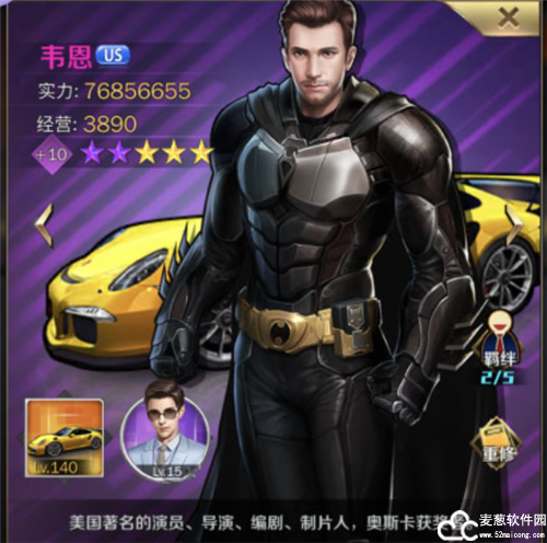 韦恩有着最强羁绊紫色人才的称号,在紫色人才里面是唯一一个具有5条羁绊组合的男人(当然女人里面也找不出),可以轻松凑齐韦恩+唐尼,韦恩+猫女,韦恩+周+强森+姜暮烟+钉宫这3条羁绊,唯一的缺点就是木有人才礼包这种额外获取人才碎片途径,游戏中只能依靠环球英才稳定获取碎片。
