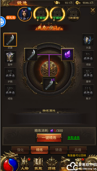 精炼:精炼位置的开启根据人物等级有关,装备精炼获得相应属性,开着精炼增加的属性不多但是精炼石的获取还是比较容易的,前期精炼很容易提升,秘境BOSS,击杀附近的人,参与击杀野外BOSS都是可以获得精炼石的。
