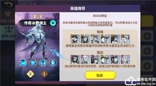 传奇冰霜领主拥有强大的控制能力及恢复能力,可以积累冰封能力在几回合后造成成吨伤害。对战策略:使用暴击优势的英雄尽快消耗传奇冰霜领主的冰封之力我方输出:通过群体伤害消灭其他怪物,或通过减疗削弱敌人的恢复效果
