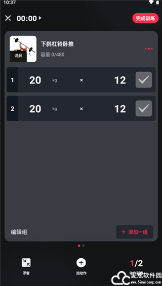 4、在编辑页里设置每组个数,最后点击【完成训练】