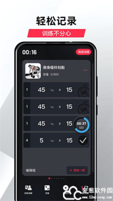快速记录当前训练数据,帮助大家更好的规划训练进程。动作,组数,次数,热身,递减,超级组通通不在话下。