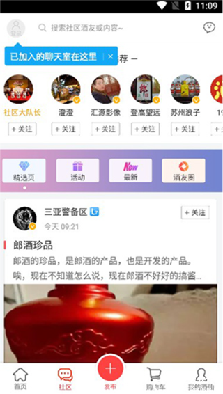 5、进入社区板块,很多酒友们会分享好玩的故事,大家可以一起互动哦。