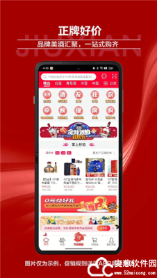 4、一键选酒:热卖好酒、名优白酒、红酒直采、喜宴用酒。