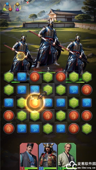 通过三消宝石布置战场,战场风云变幻莫测,玩家需要合理搭配方可掌握战场局势。还可解锁招募如平手政秀等战国名将,他们技能和属性加成各异,丰富战斗策略。