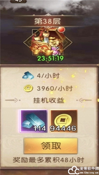 挂机资源获取在大秘境通关30层之后才开放,主公可以在挂机中获取一定数量的精铁和铜币,每次挂机资源最多累积48小时,主公记得及时获取,以防资源溢出浪费。