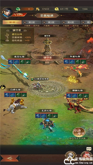 圣兽秘境中一共有五只圣兽,青龙、白虎、朱雀、麒麟等,依次对应着咱们身上的武器装备,每天大家有五次挑战的机会,能够击败它们就有机会夺取圣器,可以通过击败镇守者来增加掉落几率,祝你好运了,各位。