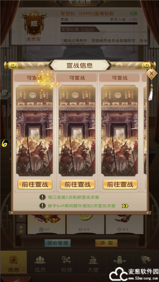 军团长和副军团长可以向已经通关的城池进行宣战,占领的城池越多,每日提供的资源也就越多。