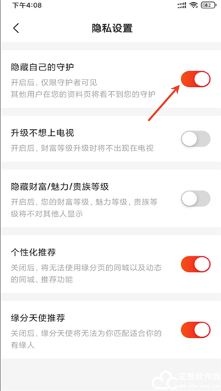 4、第一个就是【隐藏自己的守护】,将后面的按钮打开即可。