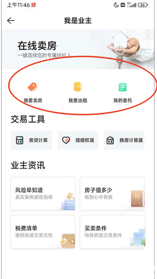 1、打开软件后,进入个人信息界面,点击【我是业主】
