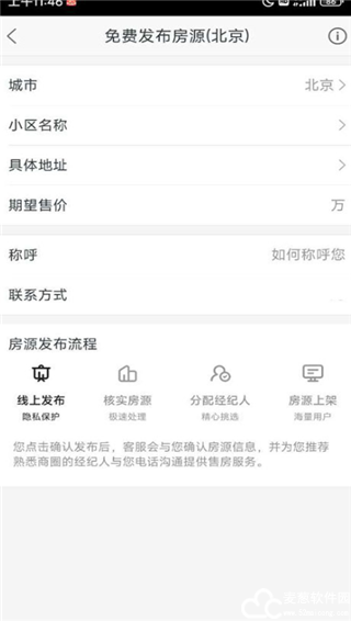 3、输入您的房源信息,比如城市、小区名称、具体地址等发布即可。