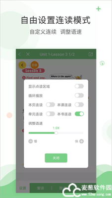 4、各种不同的跟读点读方式让大家可以随时设置,还能够设置连读模式,调整语速。