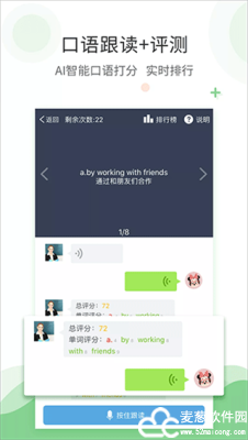 2、跟读评测:AI智能评分,还有老师纠正发音,从小培养好的口语习惯;实时排行榜,让孩子在轻松快乐中学口语。
