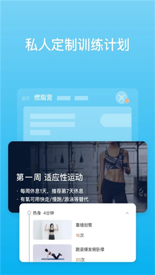 6、私人定制,系统会根据你的身体情况为你定制运动计划,包括运动项目、运动时间等。