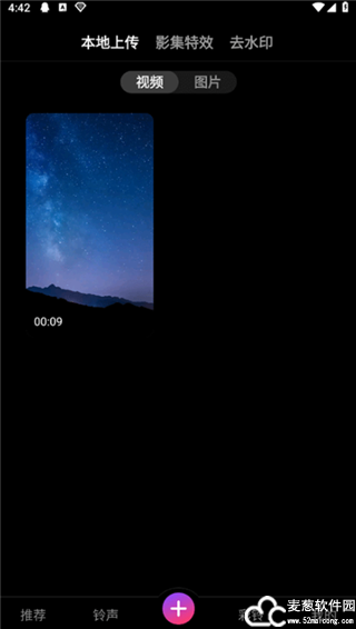 4、如果你想拥有一些不一样的音乐,也可以自己打造,上传本地视频或者素材,自己制作哦。