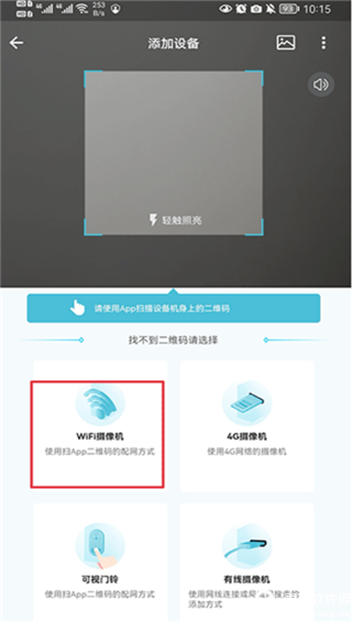 2、大家直接用手机扫描设备上的二维码即可完成绑定,如果失败的话,可以通过WiFi摄像机、4G摄像机、可视门铃等方式连接。