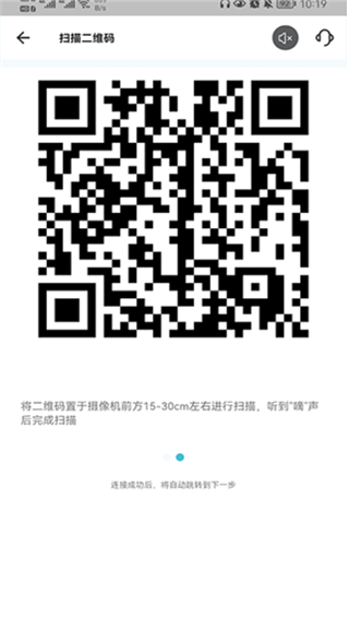 4、或者将你的手机连接WiFi后,就会出现一张二维码,放在摄像头前扫描也可以绑定。