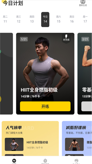 3、智能课表将推荐更适合你的每日课程,加速燃脂,运动起来!