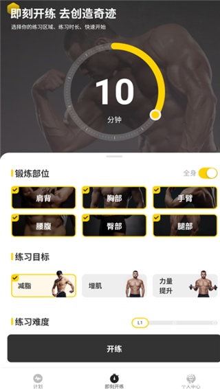 只需选择健身时间,点击“开始”,即刻感受健身的快乐!